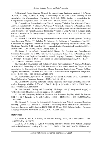 17. RASAT: Integrating Relational Structures into Pretrained Seq2Seq Model for Text-to-SQL / J. Qi, J. Tang, Z. He [et al.] // arXiv. - 2022. - 2205.06983. 10.48550/arXiv. 2205.06983. DOI: 10.48550/arXiv.2205.06983