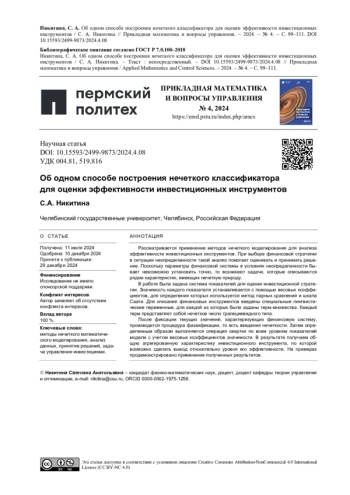 4. Поляков, Д.В. Оптимизация и управления финансовой деятельностью на основе теории нечетких множеств / Д.В. Поляков, А.И. Попов // Вестник ТГТУ. - 2020. - Т. 26, № 1. - С. 64-78. DOI: 10.17277/vestnik.2020.01.pp.064-078