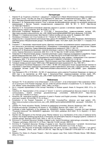 3. Волошина С. В. Репрезентация концепта “стыд” в женском автобиографическом дискурсе (на материале диалектной коммуникации) // Вестник Томского государственного университета. 2020. № 461. С. 30-37. https://doi.org/10.17223/15617793/461/4.