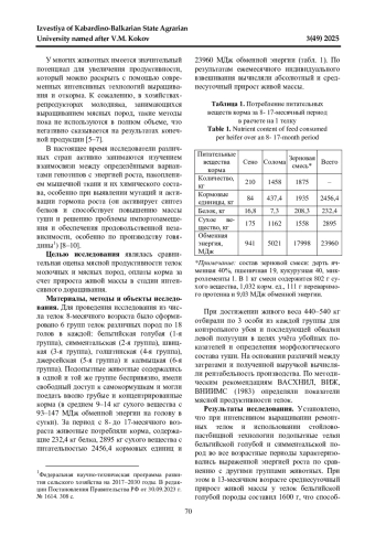 6. Колосов Ю., Приступа В., Торосян Д. Интенсивное доращивание бычков // Животноводство России. 2021. № 9. С. 59-65. DOI: 10.25701/ZZR.2021.44.92.015 EDN: WBOPMK