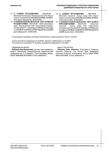 刘宝存 岑宇发布. 以数字素养框架推动数字化人才培养. -中国教育新闻网-中国教育报. - 2023.02.27. - [Electronic resource] - Access mode: URL: http://m.jyb.cn/rmtzgjyb/202302/t20230227_2111004461_wap.html (access date: 10.06.2023).