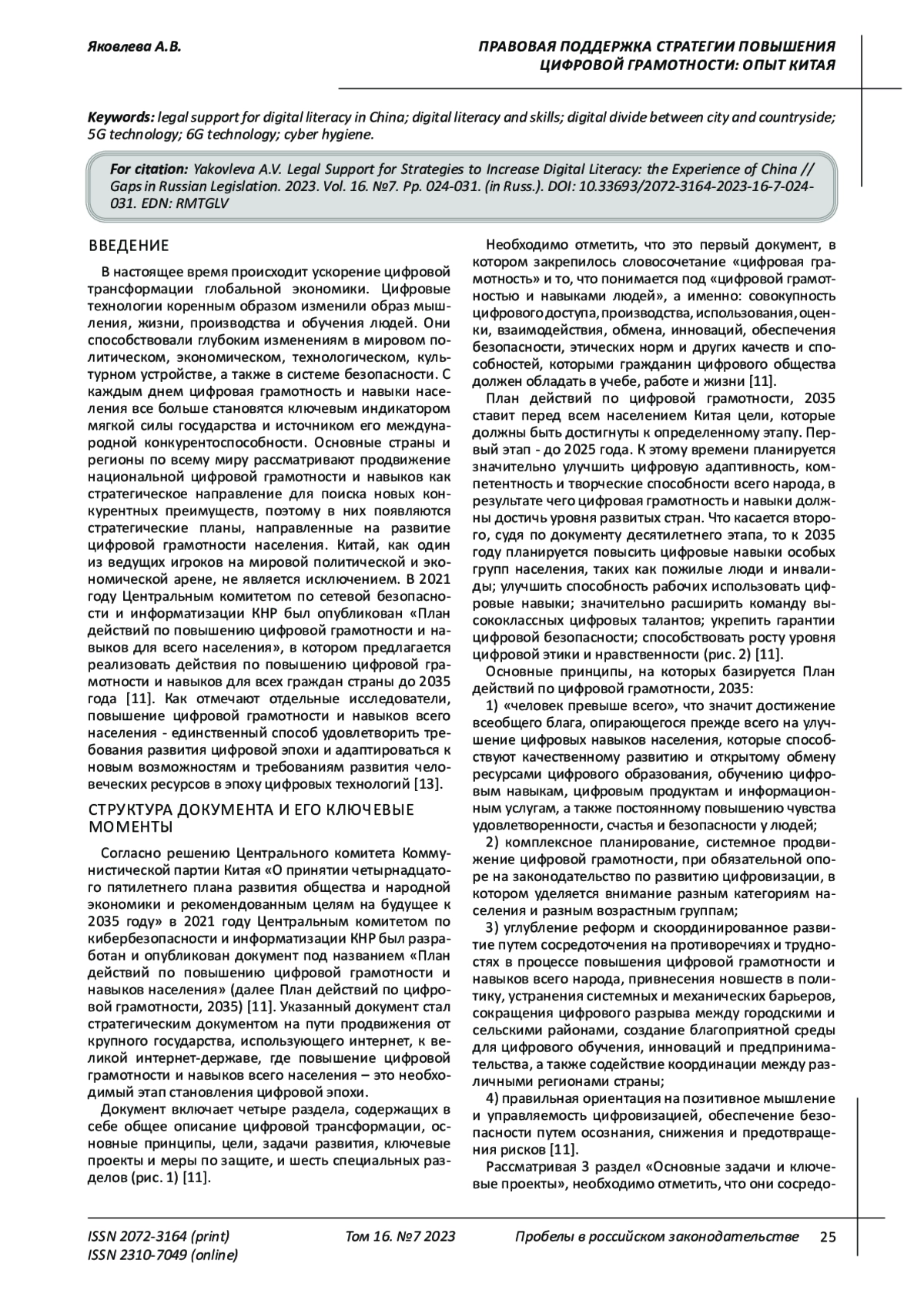 Yakovleva A.V. Problems of legal support in the development of the institute of cyber hygiene / A.V. Yakovleva // Bulletin of the University named after O.E. Kutafin (MSAL). - 2023. - № 2. - pp. 62-70. -. DOI: 10.17803/2311-5998.2023.102.2.062-070