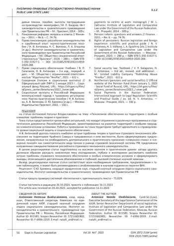 Social Payments in the Russian Federation: Intersectoral Approach to Legal Regulation: Scientific and Practical Guide / ex. ed. N. V. Antonova. - Moscow: Prospekt, 2021. - 192 p. EDN: WJABQW