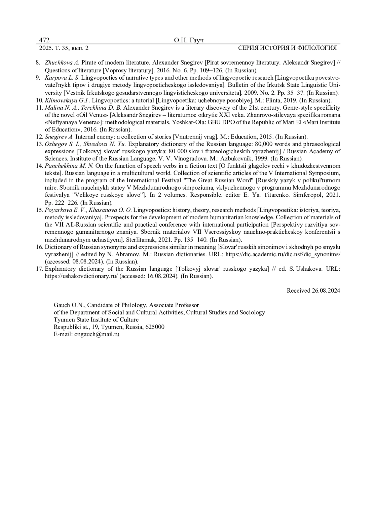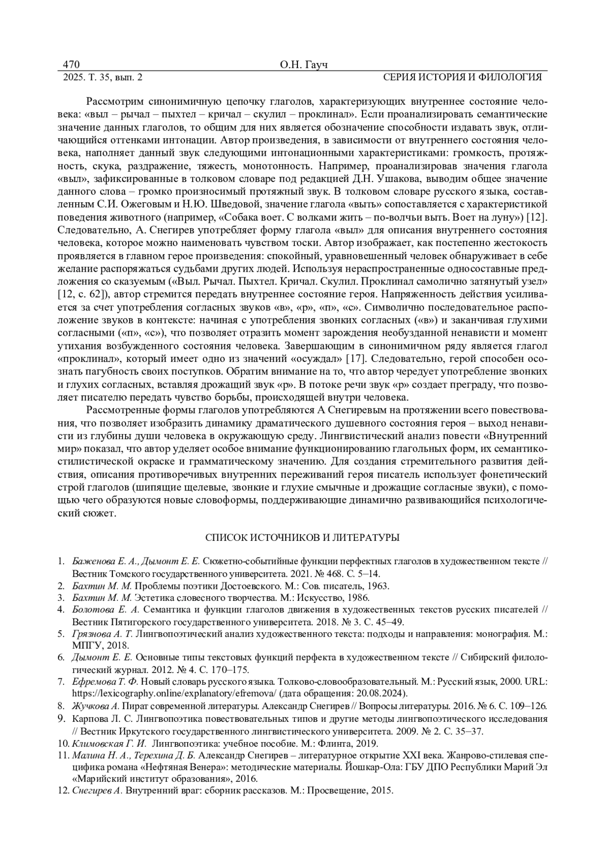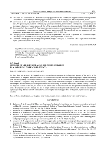 ГАУЧ О. Н. РОЛЬ ГЛАГОЛОВ В РАСКРЫТИИ МОТИВА НЕНАВИСТИ В ПРОИЗВЕДЕНИИ А. СНЕГИРЕВА «ВНУТРЕННИЙ ВРАГ» // ВЕСТНИК УДМУРТСКОГО УНИВЕРСИТЕТА. СЕРИЯ: ИСТОРИЯ И ФИЛОЛОГИЯ. 2025. Т. 35 № 2