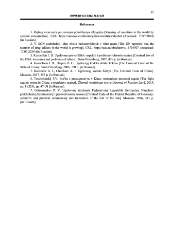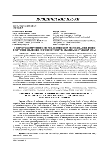 Статья: К ВОПРОСУ ОБ ОТВЕТСТВЕННОСТИ ЛИЦ, СОВЕРШИВШИХ ПРОТИВОПРАВНЫЕ ДЕЯНИЯ В СОСТОЯНИИ ОПЬЯНЕНИЯ, ПО ЗАКОНОДАТЕЛЬСТВУ ОТДЕЛЬНЫХ ЗАРУБЕЖНЫХ СТРАН (2025)
