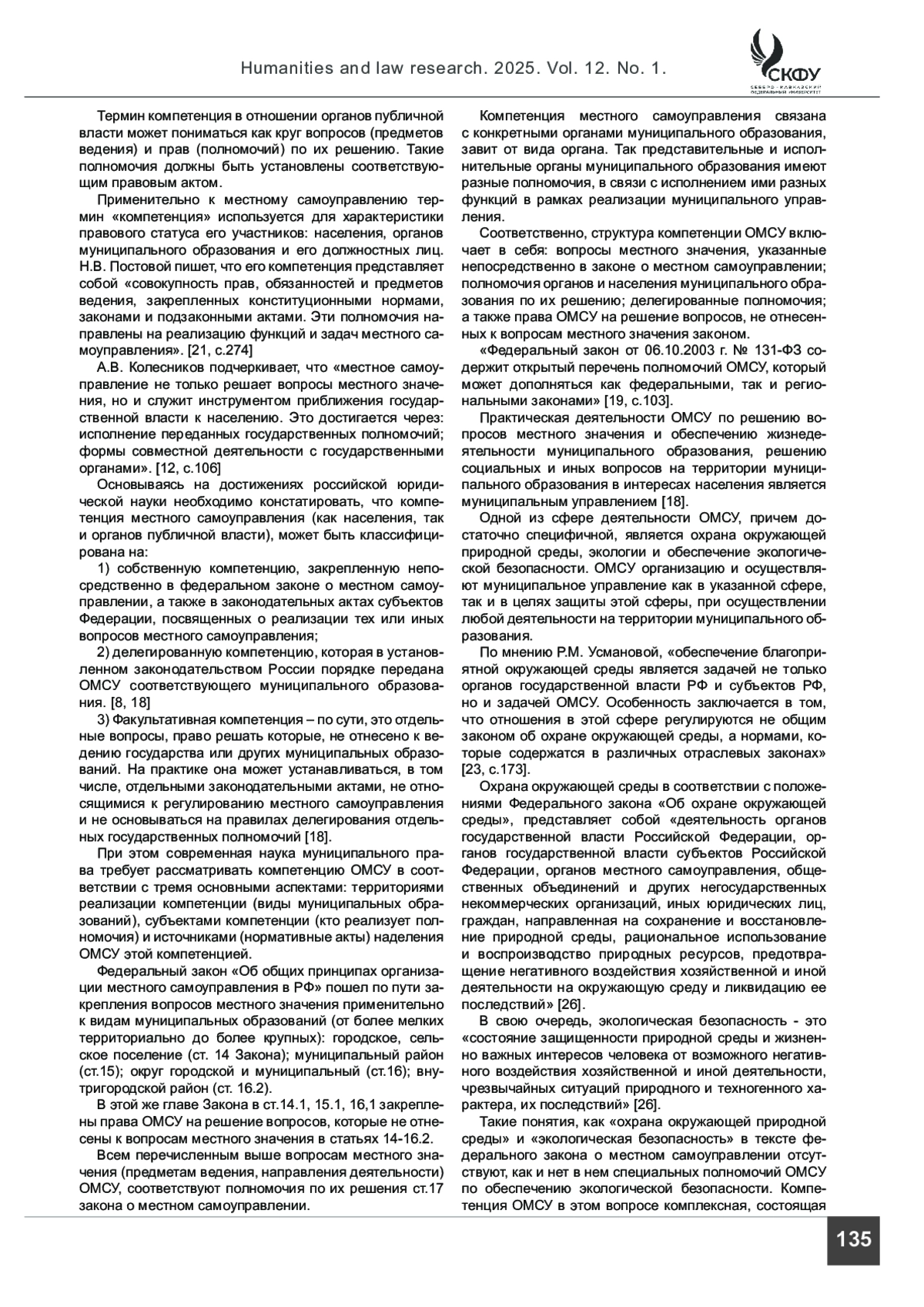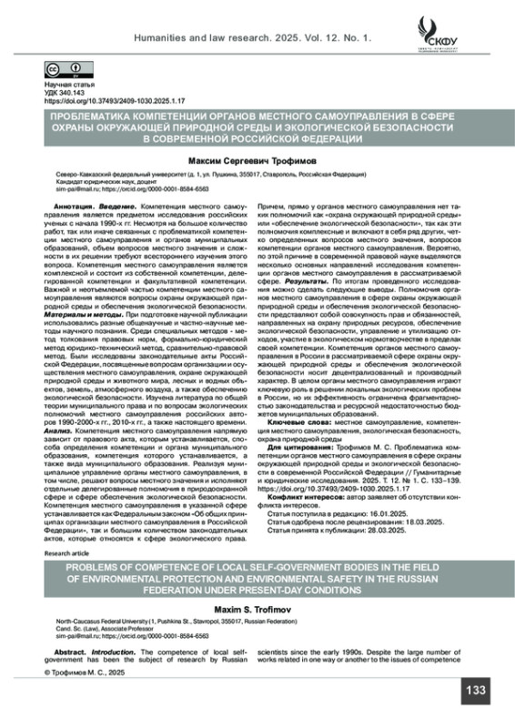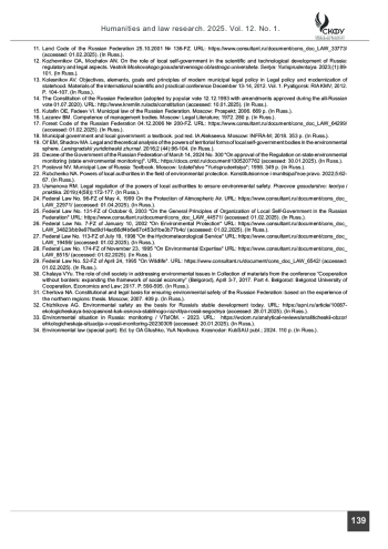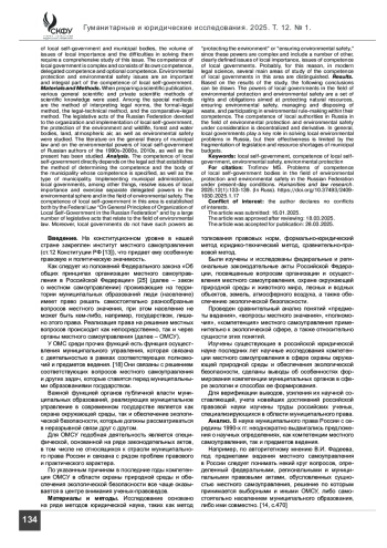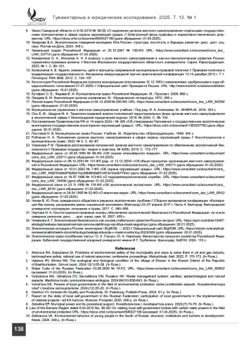 22. Рубченко Н. А. Полномочия органов местного самоуправления в сфере охраны окружающей среды // Конституционное и муниципальное право. 2022. № 5. С. 62-67.