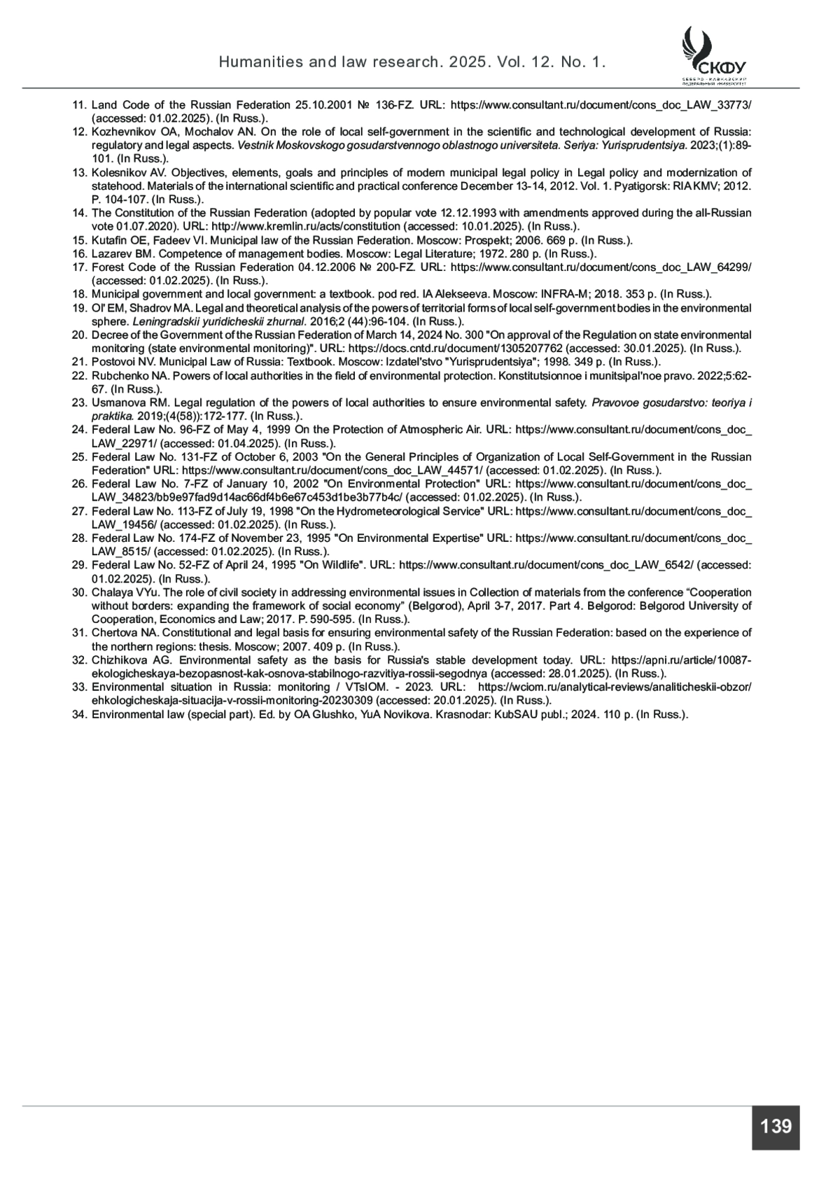 11. Земельный кодекс Российской Федерации от 25.10.2001 № 136-ФЗ. URL: https://www.consultant.ru/document/cons_doc_LAW_33773 (дата обращения: 01.02.2025).