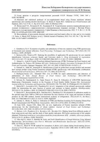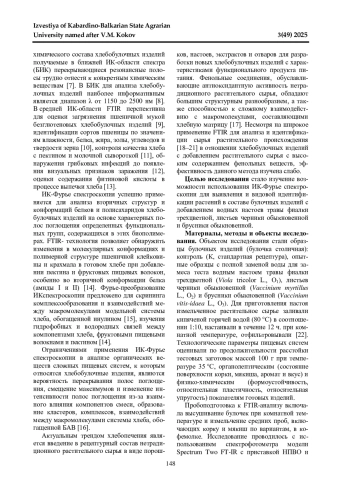 Статья: ПРИМЕНЕНИЕ ИК-ФУРЬЕ СПЕКТРОСКОПИИ ДЛЯ ВЫЯВЛЕНИЯ И ИДЕНТИФИКАЦИИ НЕТРАДИЦИОННОГО РАСТИТЕЛЬНОГО СЫРЬЯ В СОСТАВЕ СЛОЖНЫХ ПИЩЕВЫХ СИСТЕМ НА ПРИМЕРЕ БУЛОЧНЫХ ИЗДЕЛИЙ (2025)