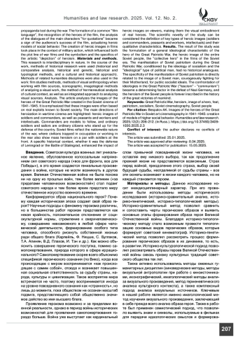 Статья: Образы героев Великой Отечественной войны в советском художественном кинематографе 1941–1945 гг.: создание моделей высшего социального поведения (2025)