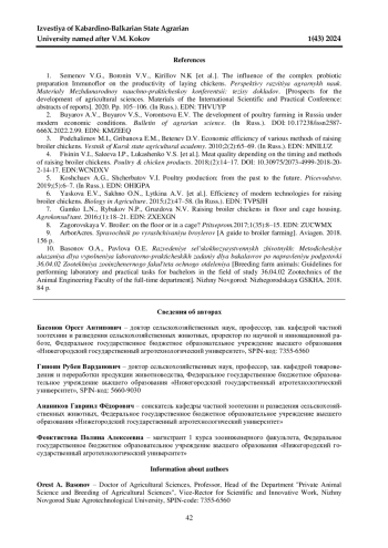 7. Гамко Л. Н., Рыбаков Н. П., Груздова Н. В. Выращивание цыплят-бройлеров при напольном и клеточном содержании // Агроконсультант. 2016. № 1. С. 18-21. EDN: ZXEXGN