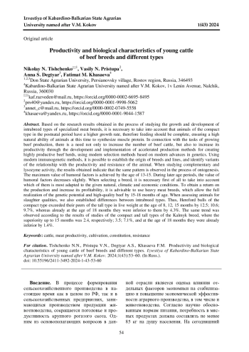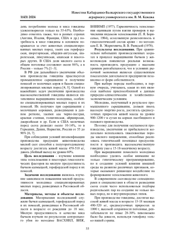 3. Мясная продуктивность бычков разных пород отечественной селекции / В. Н. Приступа, О. Е. Кротова, С. Н. Дудченко, Д. В. Клименко, Л. М. Рашид, М. Ш. Иылдыз // Известия Оренбургского государственного аграрного университета. 2023. № 4(102). С. 255-260. 10.37670/2073-0853-2023- 102-4-255-260. DOI: 10.37670/2073-0853-2023-102-4-255-260 EDN: JSCEYM