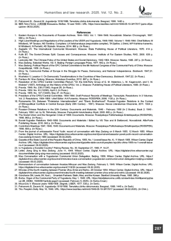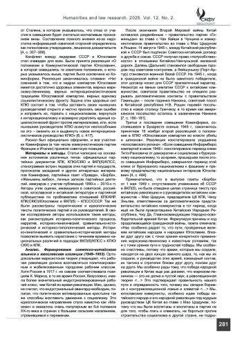 Введение. Коммунистическая партия Китая и Коммунистическая партия Югославии (с 1952 г. – Союз коммунистов Югославии) – партии, пришедшие к власти в КНР и ФНРЮ, соответственно, в результате Второй мировой войны, национального освобождения и социальных революций (1945 – 1949 и 1945 гг., соответственно. История взаимоотношений между этими двумя участниками международного коммунистического движения развивалась очень сложно и противоречиво. В статье рассматривается динамика межгосударственных и межпартийных отношений между КНР и Югославией. Масштаб и характер взаимодействия этих двух партий и государств находилась в теснейшей взаимосвязи с их отношениями с ВКП(б) (с 1952 г. – КПСС) и СССР. Материалы и методы. В статье проанализированы официальные партийные документы КПК, КПЮ/СКЮ и КПСС, стенограммы встреч лидеров этих партий и государств, протоколы заседаний и доклады Коминфома, партийные газеты и журналы, личные записи партийных лидеров, а также литература по проблематике отношений КПК/КНР, СКЮ/ Югославии и КПСС/СССР. В своем исследовании авторы использовали следующие методы: нарратив, реконструкцию, историко-генетический, сравнительно-исторический и историко-типологический методы.