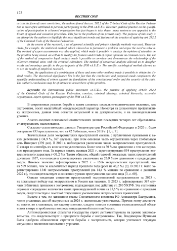 Ключевые фразы: международное общественное движение «ауе», практика применения ст 2822 ук рф, осужденные, криминальная идеология, криминальная иерархия, экстремистская организация, экспертное заключение, участники мод «ауе»