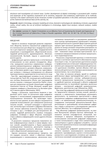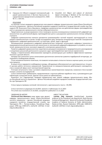 Smushkin A.B. Object and subject of electronic digital criminology // Bulletin of the Ural State Law University. 2020. No. 4. pp. 530-541. EDN: DLVPQV