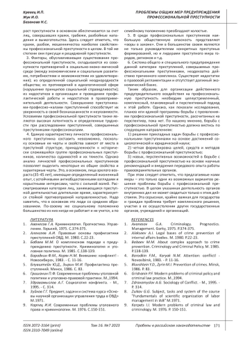 10. Кравец И.П., (2022), Проблемы специальных мер предупреждения профессиональной преступности. Пробелы в российском законодательстве. 2022. Т.15. №2. с. 134-143. EDN: PZUKUF