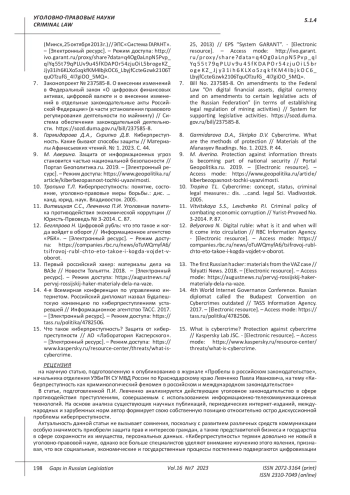 Garmidarova D.A., Skripko D.V. Cybercrime. What are the methods of protection // Materials of the Afanasyev Readings. No. 1. 2023. P. 44.