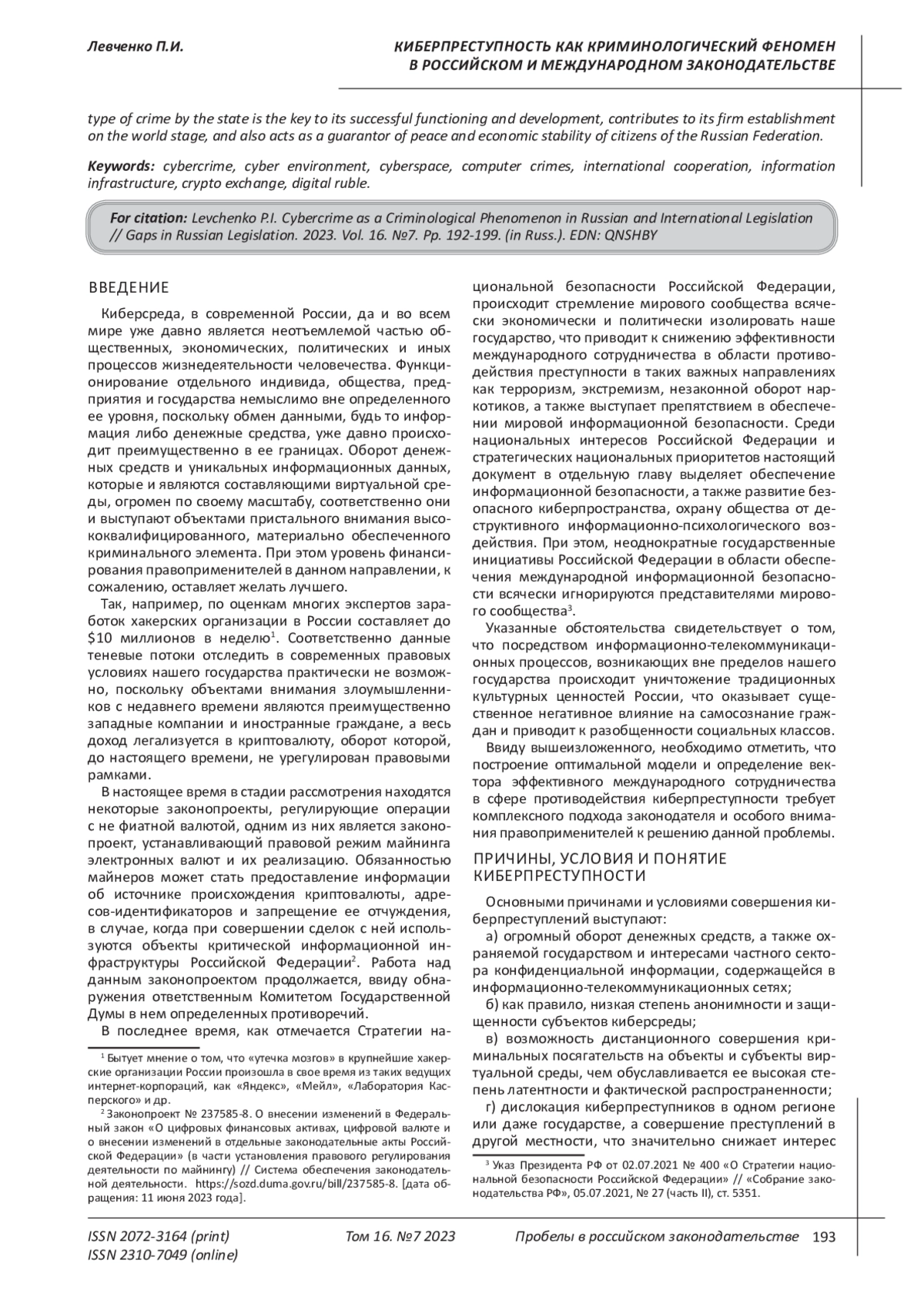 Decree of the President of the Russian Federation dated 07/02/2021 No. 400 “On the National Security Strategy of the Russian Federation” // “Collection of Legislation of the Russian Federation”, 07/05/2021, No. 27 (part II), Art. 5351.