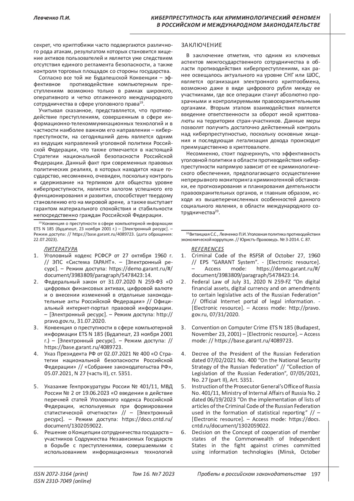 Convention on Computer Crime ETS N 185 (Budapest, November 23, 2001) - [Electronic resource]. - Access mode: // https://base.garant.ru/4089723.