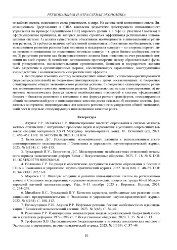 1. Ахунов Р.Р., Ислакаева Г.Р. Финансирование высшего образования в системе межбюджетных отношений // Актуальные проблемы науки и образования в условиях современных вызовов: сборник материалов XXVI Междунар. научно-практич. конф. М.: Печатный цех, 2023. С. 450-457. DOI: 10.34755/IROK.2023.31.31.014 EDN: HIYWRG