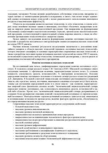 Ключевые фразы: SWOT-анализ, потенциал, высокотехнологичное производство, высокие технологии, риски, наукоемкость, инновационность