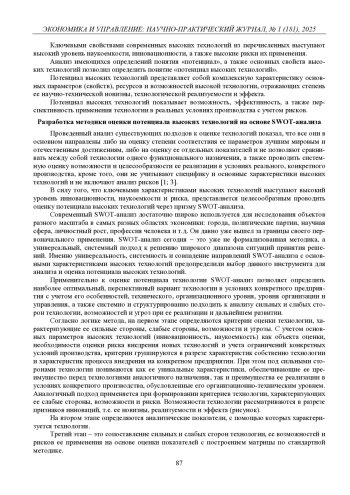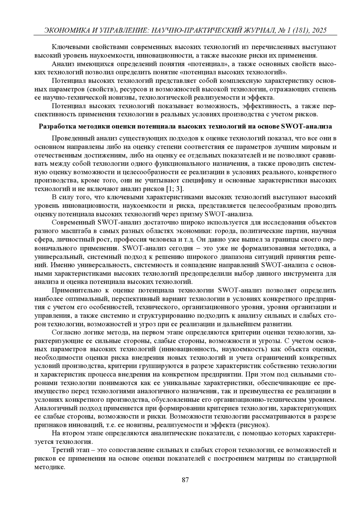 Статья: ИСПОЛЬЗОВАНИЕ SWOT-АНАЛИЗА ДЛЯ ОЦЕНКИ ПОТЕНЦИАЛА ВЫСОКИХ ТЕХНОЛОГИЙ (2025)