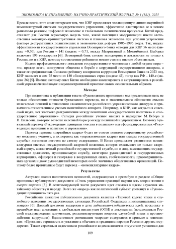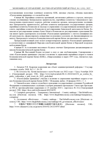 Опыт современного государственного строительства Китайской Народной Республики очень актуален для управленческой науки и политической практики Российской Федерации. Прежде всего, этот опыт интересен тем, что КНР продолжает эволюционную линию партийной номенклатурной системы государственного управления, эффективно адаптировав ее к новым рыночным реалиям, цифровой экономике и глобальным политическим процессам. Китай представляет для России зеркальную модель того, какой потенциал модернизации имели отечественная командно-административная система и плановая экономика при условии устранения фактора деструктивных политических и экономических реформ 1985–1996 годов. Так, индекс эффективности государственного управления Всемирного банка отводит для КНР 56 место (индекс +0,50), для России – 141 (индекс – 0,71, между Мавританией и Мозамбиком). Выборка включает 193 государства [6]. Всемирный банк сложно заподозрить в лояльности не только к России, но и к КНР, поэтому соотношение рейтингов можно считать вполне объективным