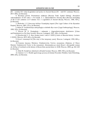 3. История суда и правосудия в России: в 9 т. Т. 1: Законодательство и правосудие в Древней Руси (IX - середина XV в.). М.: Норма: ИНФРА-М, 2017. 640 с.