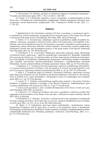 9. Полосухина О. В. Понятие, значение и особенности правового положения осужденных // Уголовно-исполнительное право. 2021. Т. 16 (1-4). № 4. С. 442-448. EDN: KPPCRX