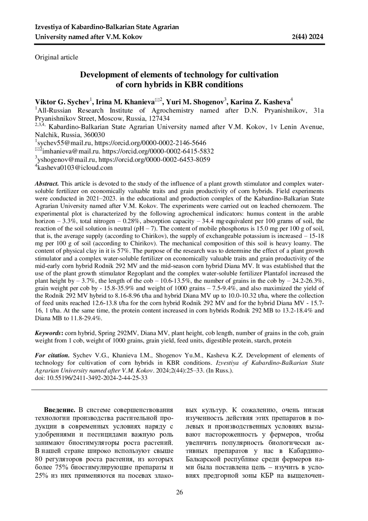 7. Агрохимическое обеспечение посевов кукурузы в условиях КБР / А. Ю. Кишев, З. С. Шибзухов, М. И. Езиев, А. Х. Эржибов // Современный взгляд на развитие АПК: актуальные вопросы, достижения и инновации. Сборник научных трудов по материалам Всероссийской (национальной) научнопрактической конференции. Нальчик, 2023. С. 85-90. EDN: IXSCEW