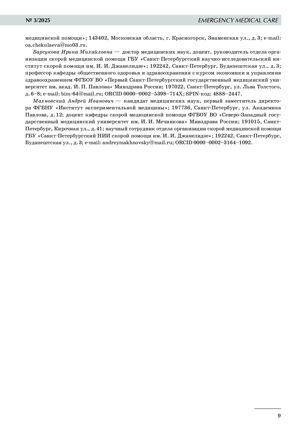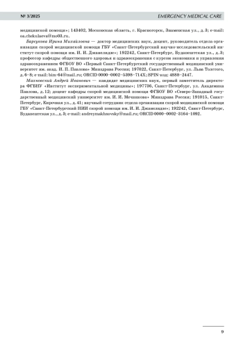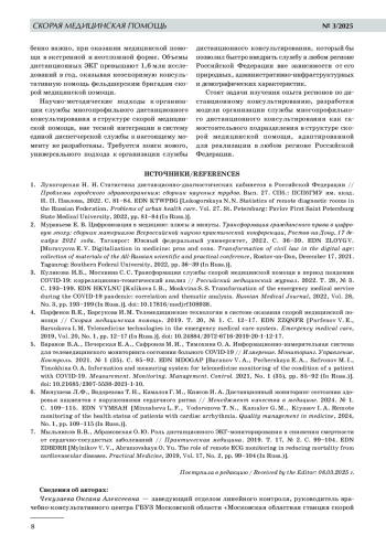 3. Куликова И.Б., Москвина С. С. Трансформация службы скорой медицинской помощи в период пандемии COVID-19: корреляционно- тематический анализ // Российский медицинский журнал. 2022. Т. 28, № 3. С. 193 199. EDN HKYLNU [Kulikova I. B., Moskvina S. S. Transformation of the emergency medical service during the COVID-19 pandemic: correlation and thematic analysis. Russian Medical Journal, 2022, Vol. 28, No. 3, рp. 193–199 (In Russ.)]. doi: 10.17816/medjrf108938.