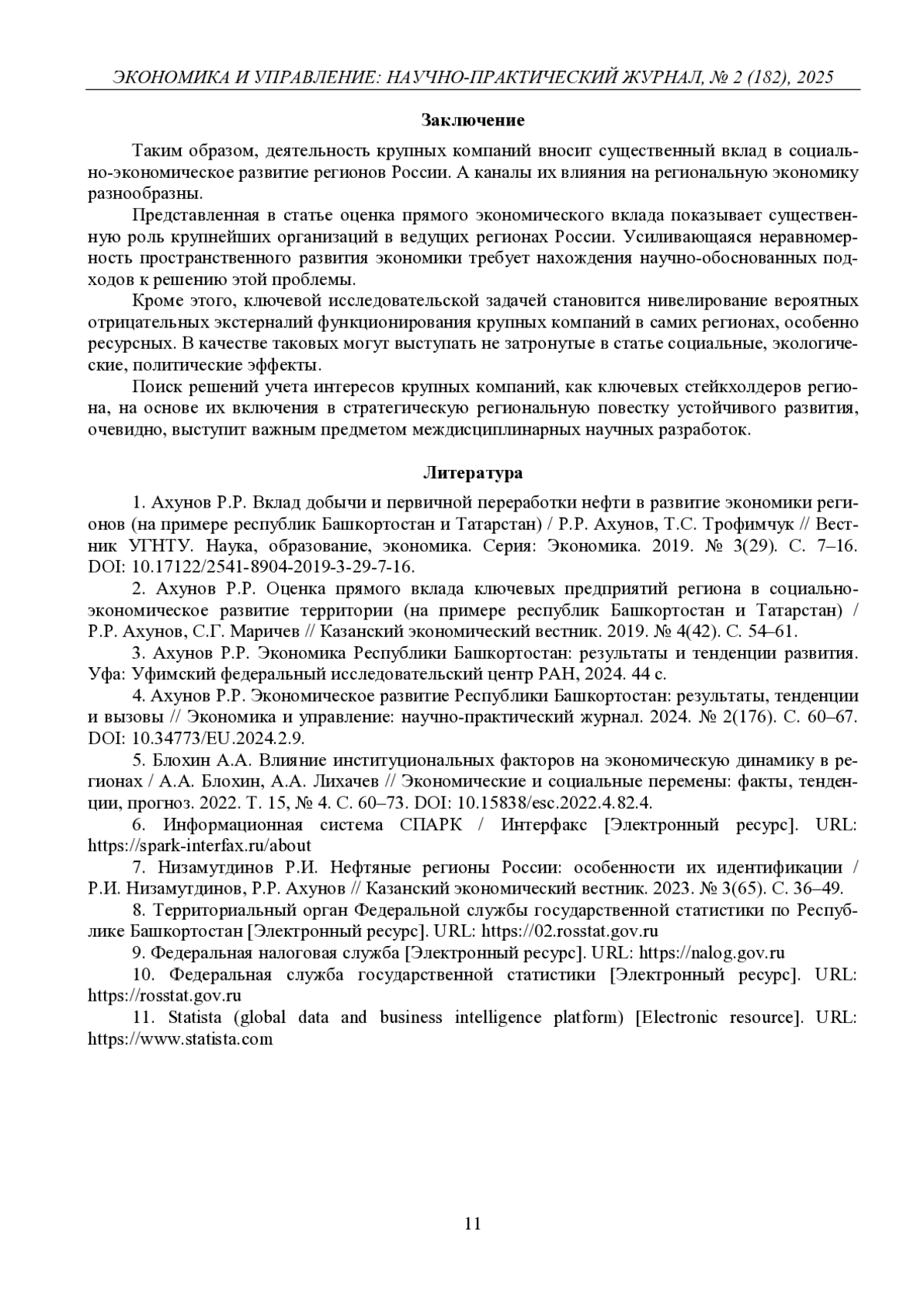 2. 	Ахунов Р.Р. Оценка прямого вклада ключевых предприятий региона в социально-экономическое развитие территории (на примере республик Башкортостан и Татарстан) / Р.Р. Ахунов, С.Г. Маричев // Казанский экономический вестник. 2019. № 4(42). С. 54-61.
