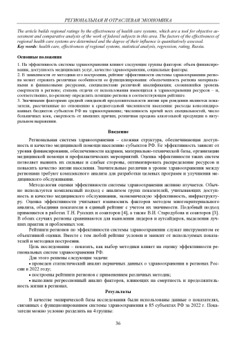 В статье построены рейтинги регионов по эффективности систем здравоохранения, представляющие собой инструмент объективной оценки и сравнительного анализа работы субъектов РФ в этой сфере. Определены факторы эффективности региональных систем здравоохранения и количественно оценена степень их влияния