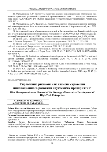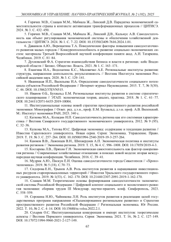 5. 	Горячих М.В., Слащев М.М., Мабиала Ж., Линский Д.В., Кальмус А.В. Самодостаточность как объект регулирования экономической системы и обеспечения хозяйственной деятельности // ЦИТИСЭ. 2024. № 1. C. 7-22.  DOI: 10.15350/2409-7616.2024.1.01  EDN: QTJNVJ