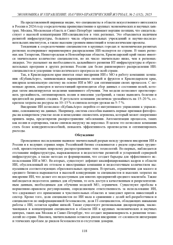 В статье представлен анализ роли искусственного интеллекта (ИИ) и машинного обучения (МО) в современных системах управления предприятиями, с акцентом на различия в их применении в регионах России и за рубежом. Исследование выявило существенное отставание российского ИТ-сектора от передовых стран в области внедрения и развития ИИ. Для оценки ситуации авторами проведен анализ ИТ-сектора РФ, рассмотрены особенности регионального распределения специалистов и инфраструктуры, а также подчеркнута необходимость создания устойчивой образовательной среды для подготовки ИИ-специалистов. Особое внимание уделяется важности обучения уже внедренных ИИ-систем и наращивания их функциональности в процессах планирования посредством машинного обучения новых поколений моделей. В статье подчеркнута критическая роль ИИ в цифровой трансформации бизнеса и необходимость активных действий для преодоления выявленных проблем в России.