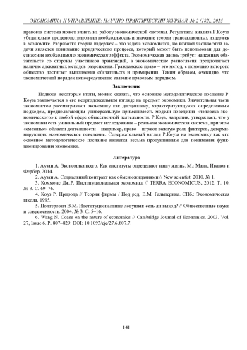 6. 	Wang N. Coase on the nature of economics // Cambridge Journal of Economics. 2003. Vol. 27, Issue 6. P. 807-829. DOI: 10.1093/cje/27.6.807.7 EDN: GKYWTX