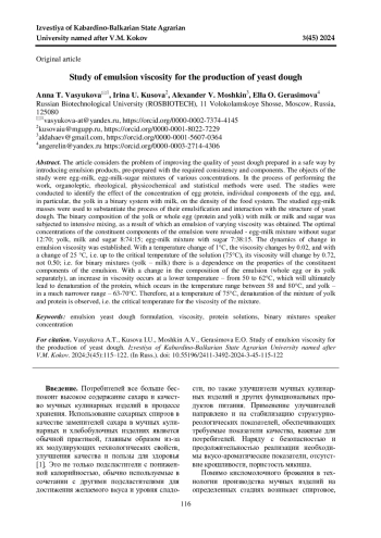 Статья: ИССЛЕДОВАНИЕ ВЯЗКОСТИ ЭМУЛЬСИИ ДЛЯ ПРОИЗВОДСТВА ДРОЖЖЕВОГО ТЕСТА (2024)
