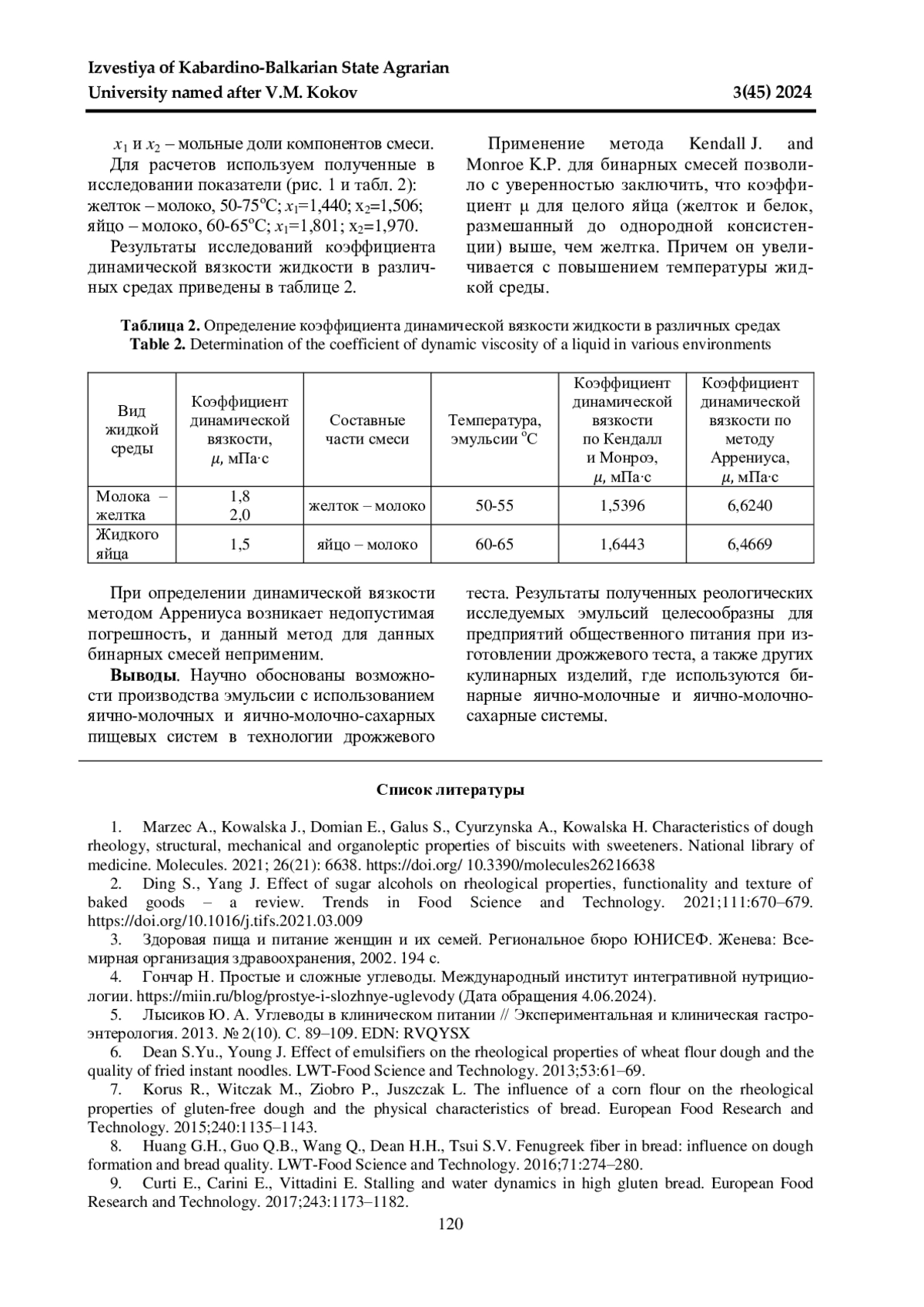 ВАСЮКОВА А. Т., КУСОВА И. У., МОШКИН А. В., ГЕРАСИМОВА Э. О. ИССЛЕДОВАНИЕ ВЯЗКОСТИ ЭМУЛЬСИИ ДЛЯ ПРОИЗВОДСТВА ДРОЖЖЕВОГО ТЕСТА // ИЗВЕСТИЯ КАБАРДИНО-БАЛКАРСКОГО ГОСУДАРСТВЕННОГО АГРАРНОГО УНИВЕРСИТЕТА ИМ. В. М. КОКОВА. 2024. № 3 (45)