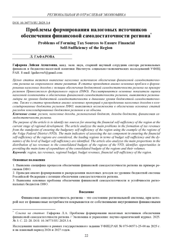 Целью статьи является выявление налоговых источников обеспечения финансовой самодостаточности региона на современном этапе развития. В статье проводится анализ основных проблем в формировании налоговых доходов с позиции обеспечения бюджетной самодостаточности региона на примере регионов Приволжского федерального округа (ПФО). Рассматриваются основные показатели оценки налоговой компоненты в обеспечении финансовой самодостаточности регионов, выявляются регионылидеры по уровню бюджетной самодостаточности и динамике уровня бюджетной самодостаточности. Также в статье проводится анализ основных пропорций в распределении налоговых доходов в консолидированные бюджеты регионов ПФО, выявляются возможности в обеспечении основных статей расходов консолидированных бюджетов регионов и их объемы