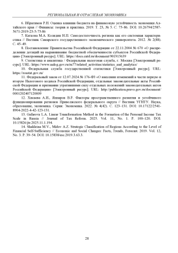 6. Ибрагимов Р.Н. Оценка влияния бюджета на финансовую устойчивость экономики Алтайского края // Финансы: теория и практика. 2019. Т. 23, № 5. С. 75-86. DOI: 10.26794/2587-5671-2019-23-5-75-86 EDN: FXUNMG