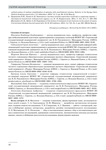 Myrzasheva N. M., Eshiev A. M. Dependence of the tactics of treatment of jaw fractures on the nature of injury. Central Asian Medical Journal named after M. M. Mirrakhimov, 2014, Vol. XX, No. 4, рр. 335-338 (In Russ.).