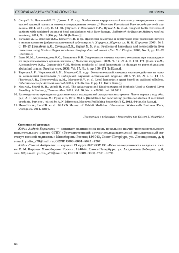 Bunatyan A. G., Zavenyan Z. S., Bagmet N. N. et al. Problems of hemostasis and hermeticity in liver resections using fibrin-collagen substance. Surgery. Journal named after N. I. Pirogov, 2003, No. 9, рр. 18-23 (In Russ.).