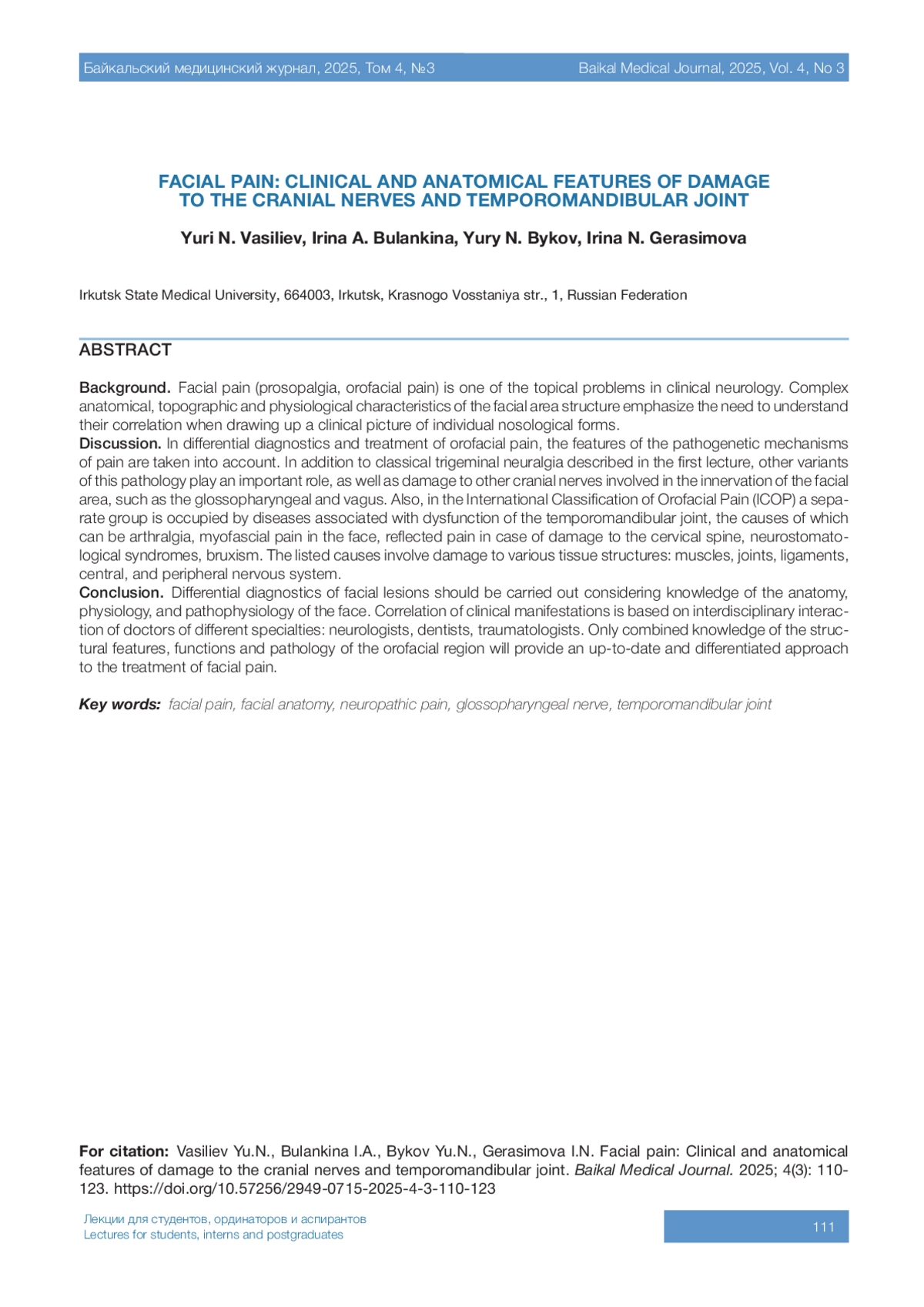 21. Мингазова Л.Р., Воеводина Н.М., Баринов А.Н. Орофациальная боль. Opinion Leader. 2020;12(41):58-66. URL: https://fliphtml5.com/qygfj/kgty/Opinion_Leader_12%2841%29_2020.
