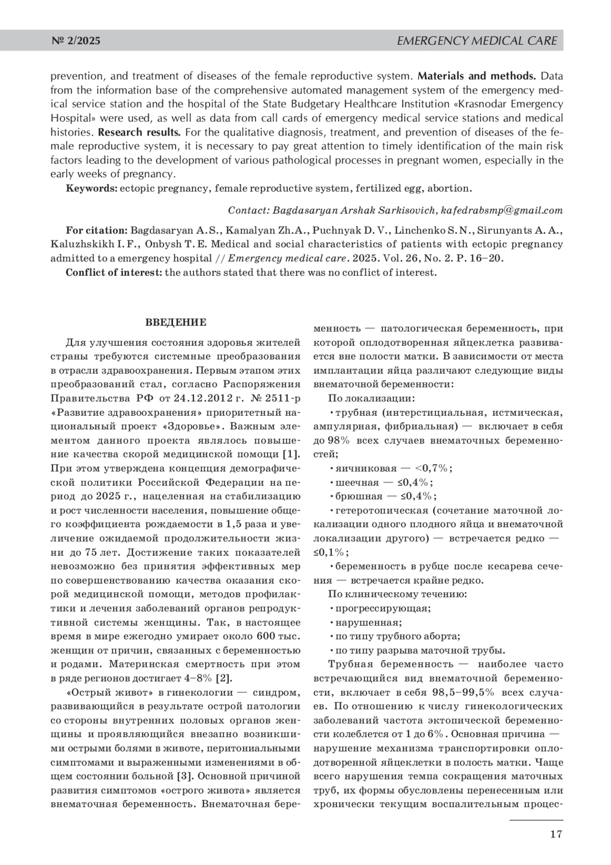 ГУДКОВ С. А., БАРАЧЕВСКИЙ Ю. Е., БРАГИНА С. В. МЕДИКО-СОЦИАЛЬНАЯ ХАРАКТЕРИСТИКА ПАЦИЕНТОК С ВНЕМАТОЧНОЙ БЕРЕМЕННОСТЬЮ, ПОСТУПАЮЩИХ В БОЛЬНИЦУ СКОРОЙ МЕДИЦИНСКОЙ ПОМОЩИ // СКОРАЯ МЕДИЦИНСКАЯ ПОМОЩЬ. 2025. № 2, ТОМ 26