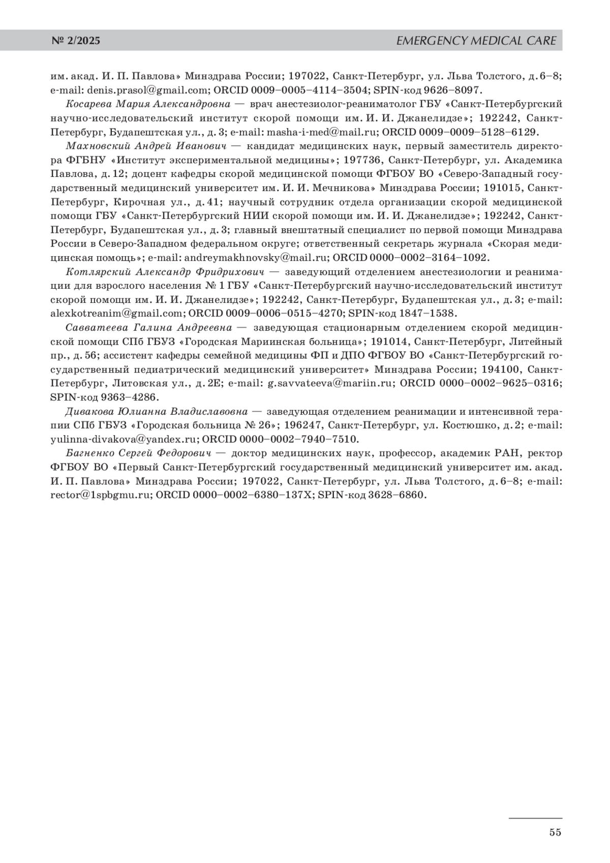 3. Теплов В.М., Прасол Д. М., Коломойцев В. В., Архангельский Н. Д., Багненко С. Ф. Центр по лечению внезапной сердечной смерти: результаты пяти лет работы // Вестник анестезиологии и реаниматологии. 2023. Т. 20, № 1. С. 17-23.