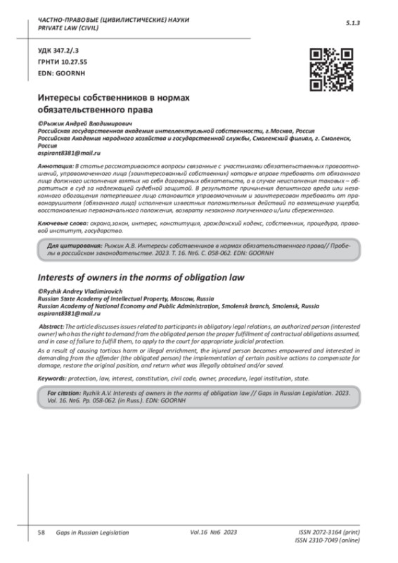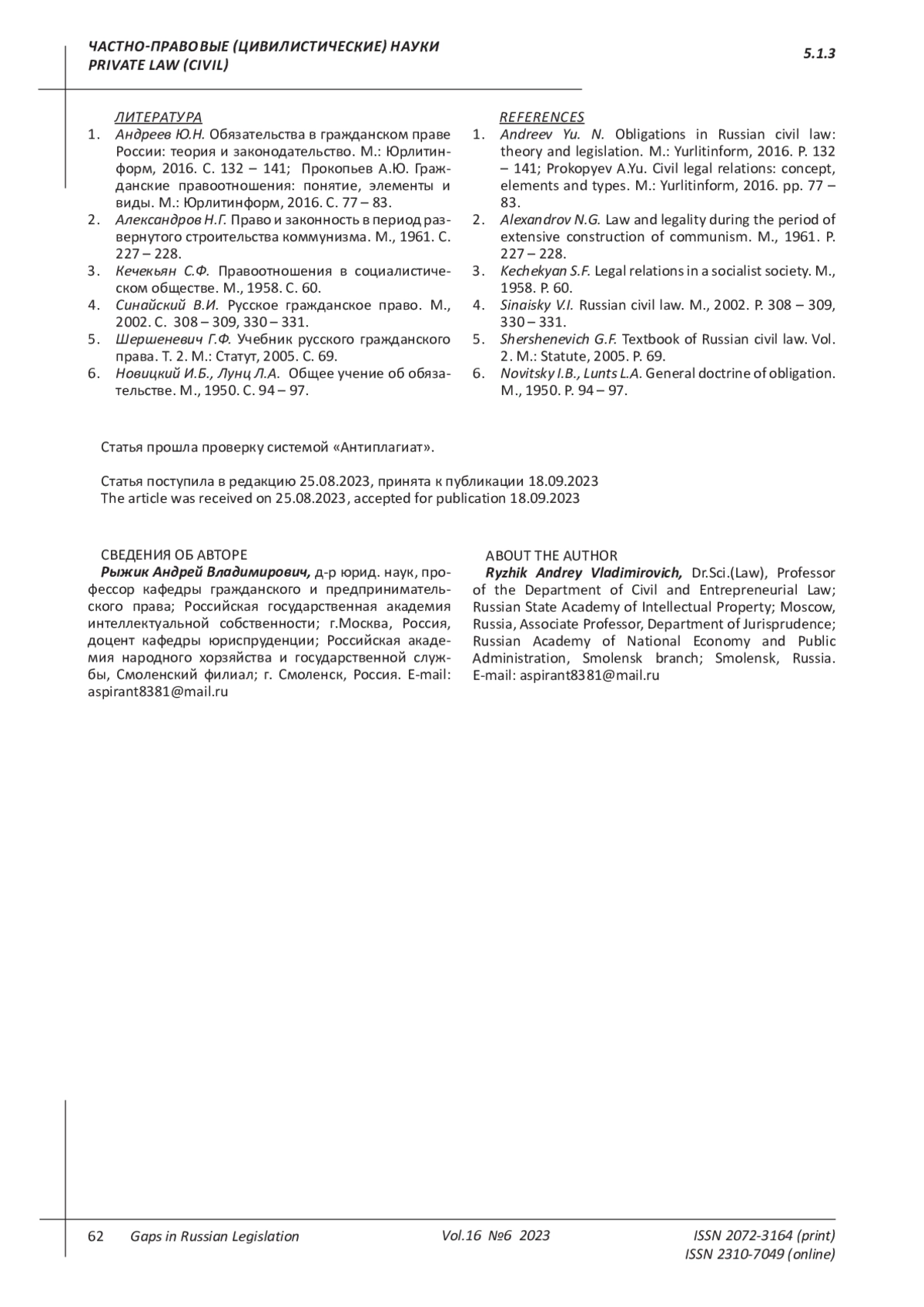 1. Андреев Ю.Н. Обязательства в гражданском праве России: теория и законодательство. М.: Юрлитинформ, 2016. С. 132 - 141. EDN: VCRDHT