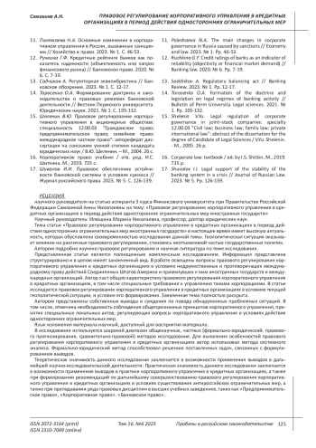 13. Садчиков А. Регуляторная эквилибристика // Банковское обозрение. 2023. № 1. С. 12-17.