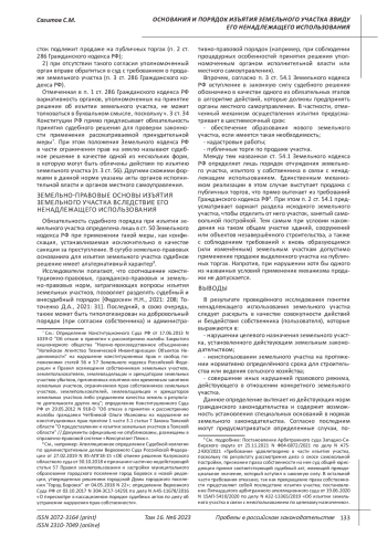 3. 	Батраков Н.К., Трубников Д.А. Проблемы изъятия земельного участка, не используемого по целевому назначению или используемого с нарушением законодательства Российской Федерации // Modern Science. 2019. № 12-3. С. 194-198. EDN: BKOEMI