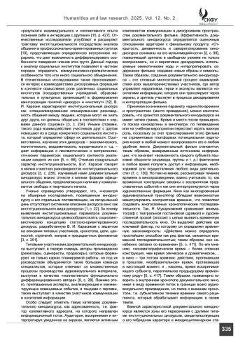 Статья: Особенности институциональнальных параметров документального кинодискурса (2025)