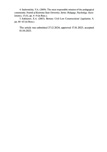 5. Суханов Е. А. Осторожно: гражданско-правовые конструкции! // Законодательство. 2003. № 9. С. 60-65.Статья поступила в редакцию 27.12.2024; одобрена после рецензирования 17.01.2025; принята к публикации 01.04.2025.