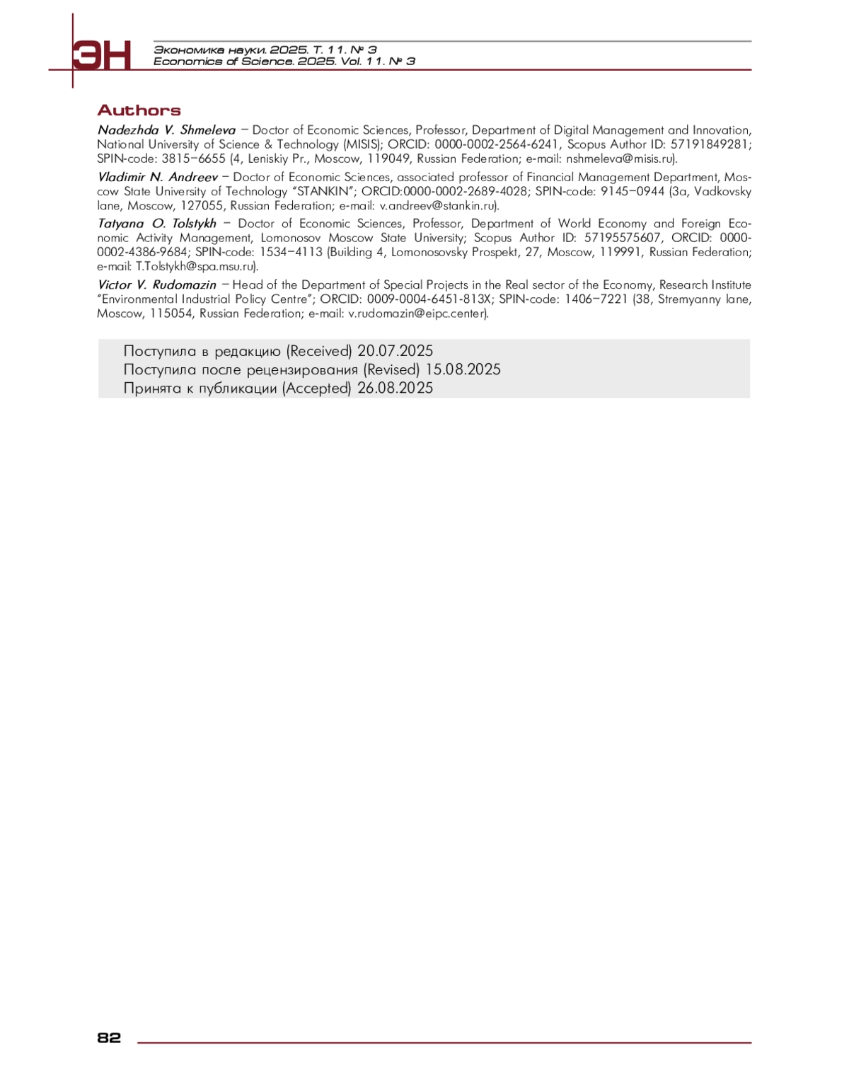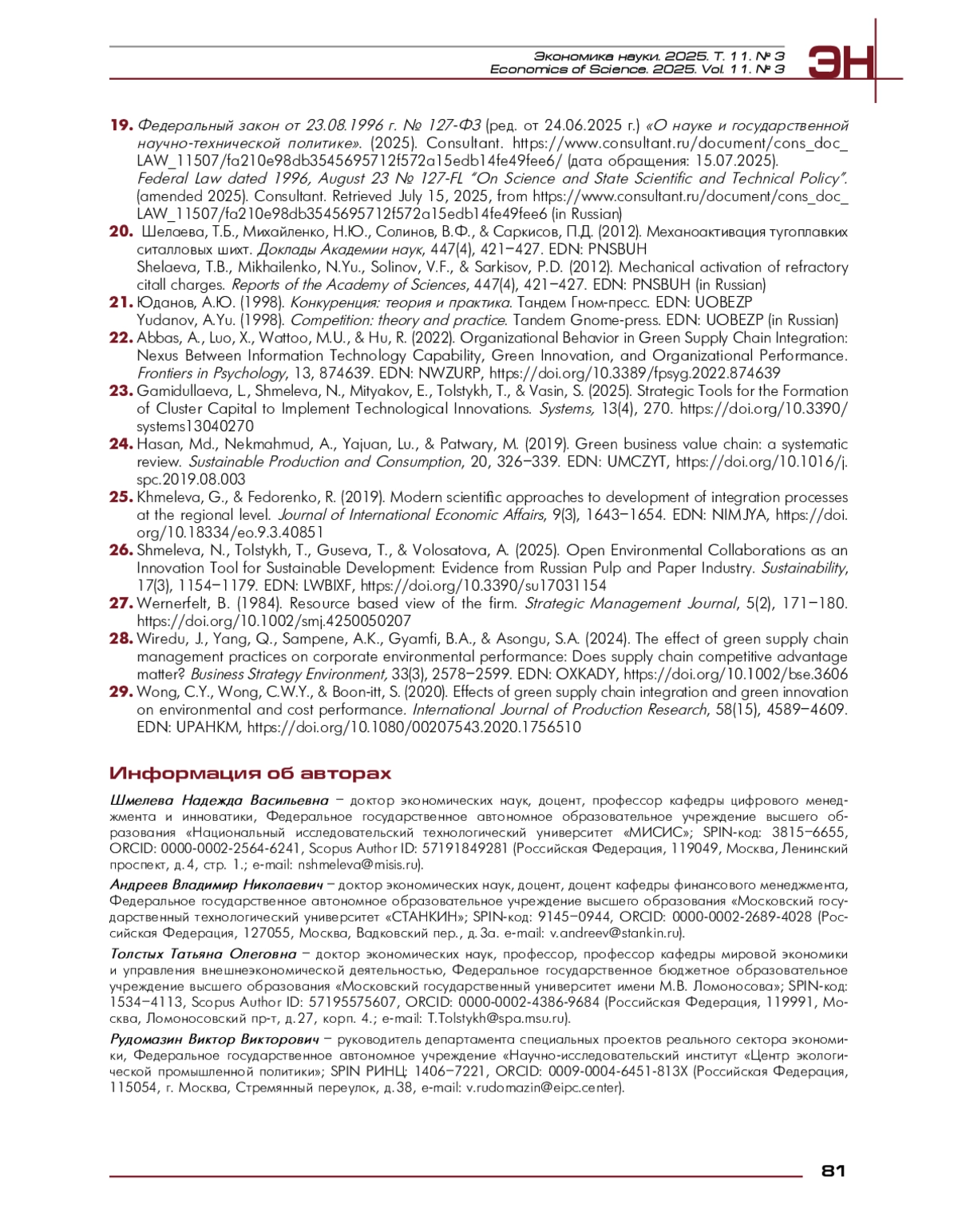 26. Shmeleva, N., Tolstykh, T., Guseva, T., & Volosatova, A. (2025). Open Environmental Collaborations as an Innovation Tool for Sustainable Development: Evidence from Russian Pulp and Paper Industry. Sustainability, 17(3), 1154-1179. EDN: LWBIXF, https://doi.org/10.3390/su17031154